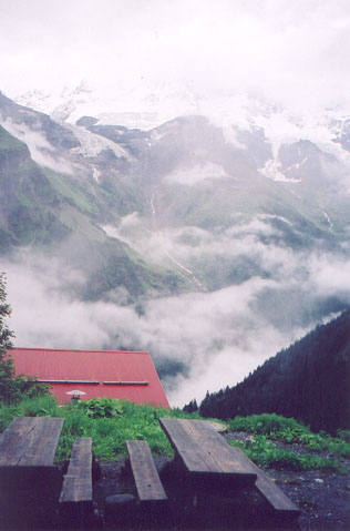 It was gray skies and clouds like this that caused us to leave Gimmelwald a day early, in a hurried rush to go in search of bluer skies in Germany.