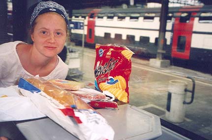 On the way to Mainz we had one of our favorite lunches of the trip -baguette sandwich with salami and a sharp white cheese, chips, carrots, apples and of course mountain spring water from the Swiss Alps.