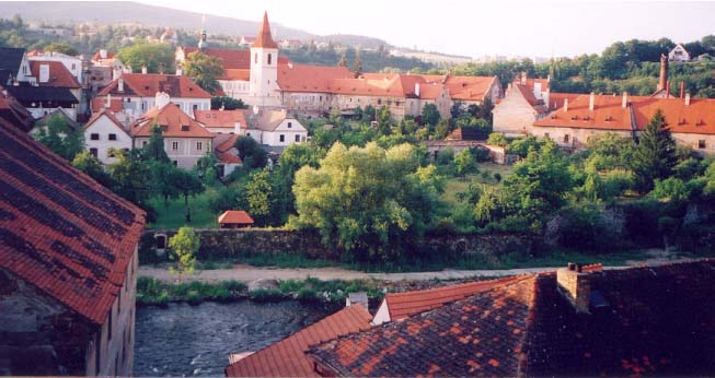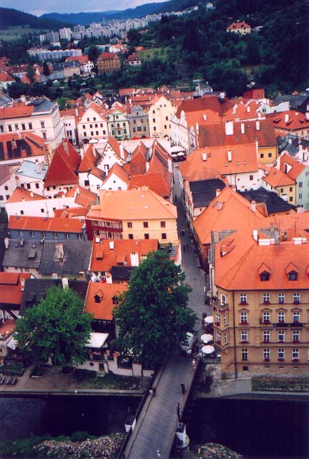 This is a view from the palace tower. You can see the river and the old center part of the town. You can also see the more modern apartments off in the distance.